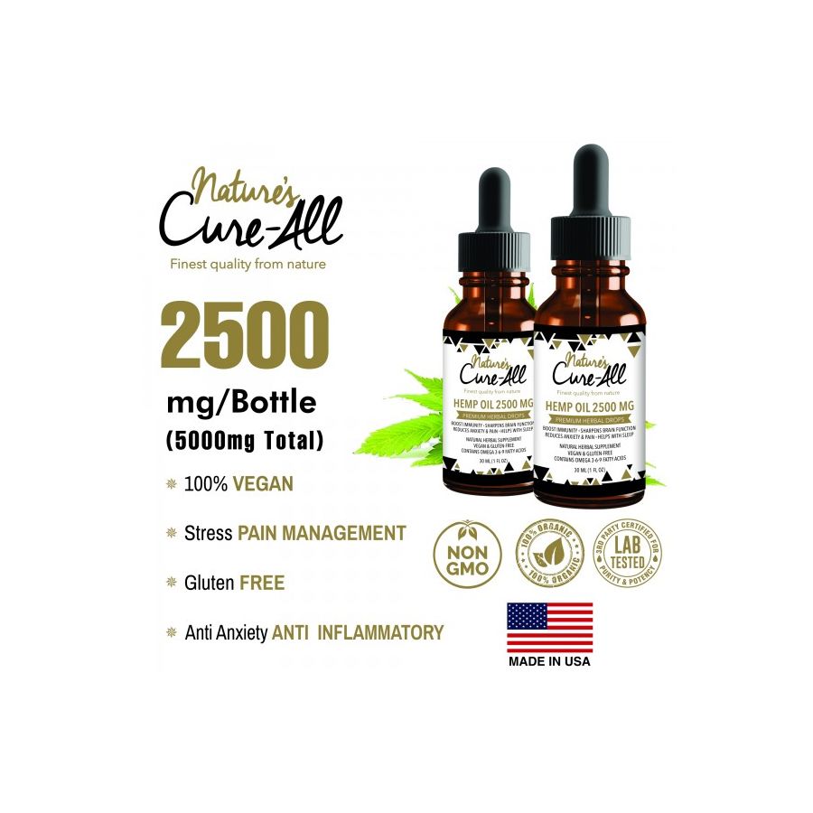 Nature’s Cure-All 2500mg Herbal Tincture is formulated to improve a variety of health concerns and aid in improving overall Health and Wellness. Unlock a better you with a daily dose of our high potency Organic Extract made from whole aerial parts of organic plant. Extract is produced using CO2 extraction process containing less than 0.3% THC but retains all CBXs. It’s 100% organic and Free from GMO, pesticide, herbicide, and chemical.