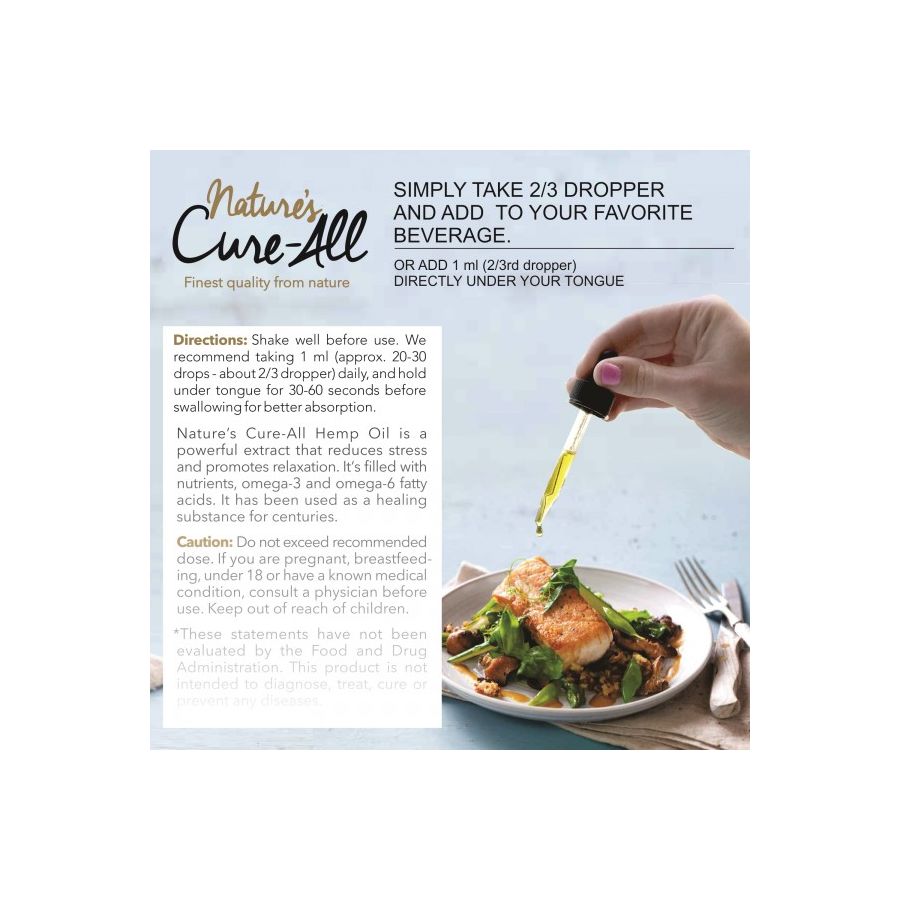 Nature’s Cure-All 5000mg Herbal Tincture is formulated to improve a variety of health concerns and aid in improving overall Health and Wellness. Unlock a better you with a daily dose of our high potency Organic Extract made from whole aerial parts of organic plant. Extract is produced using CO2 extraction process containing less than 0.3% THC but retains all CBXs. It’s 100% organic and Free from GMO, pesticide, herbicide, and chemical.